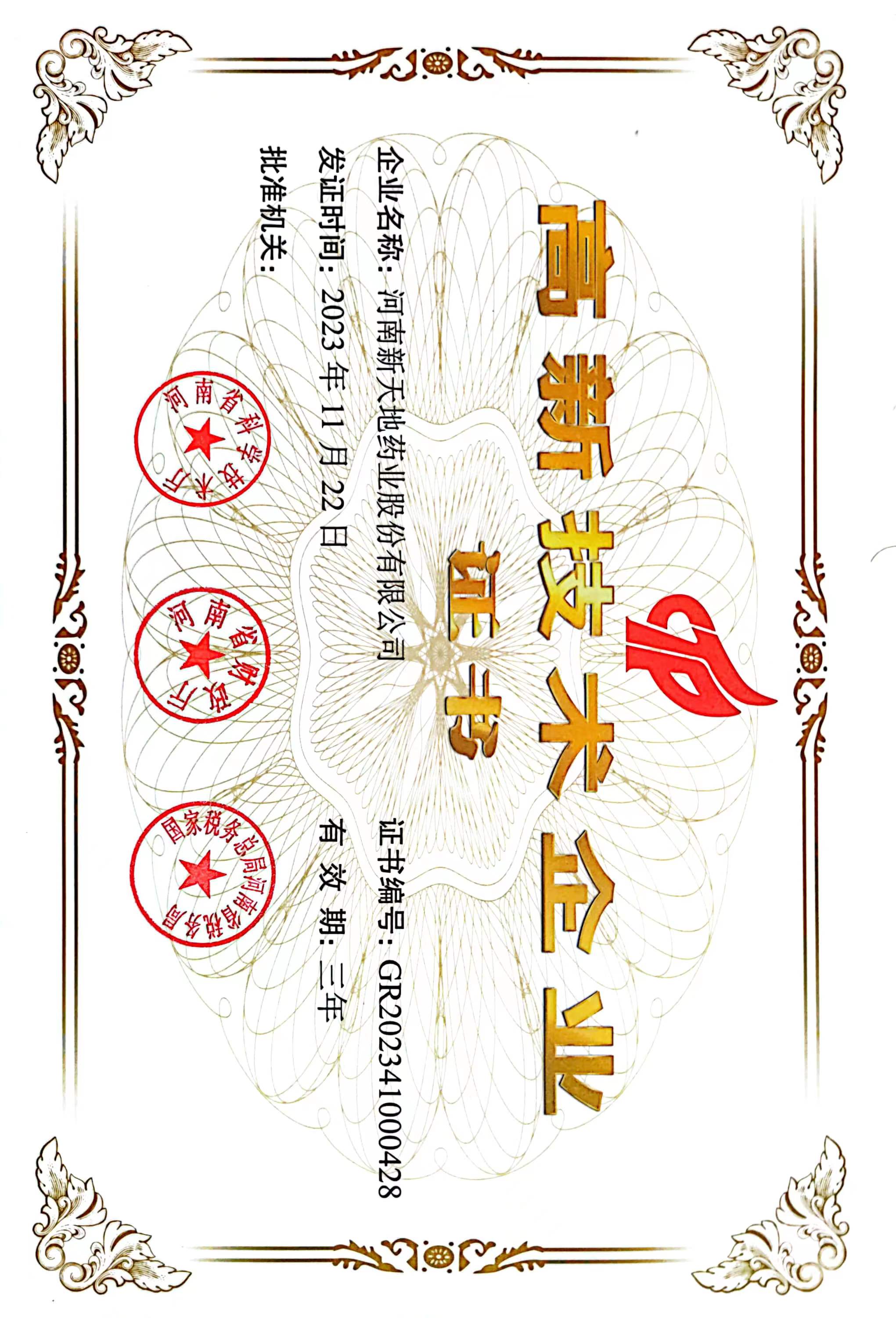 公司是国家级高新技术企业、、、、商务部重点企业、、、、河南省高新技术产品出口重点企业、、、、河南省创新型试点企业、、河南省知识产权优势培育企业、、河南省百户高成长性中小企业,,,先后被批准成立河南省抗生素中间体工程技术研究中心、、河南省博士后研发基地。。。公司先后于2006年和2007年获得英国摩迪国际认证有限公司ISO 9001:2000质量管理体系、、BS EN ISO 14001:2004环境管理体系、、、、OHSAS 18001:1999职业健康安全管理体系“三标一体”认证。。